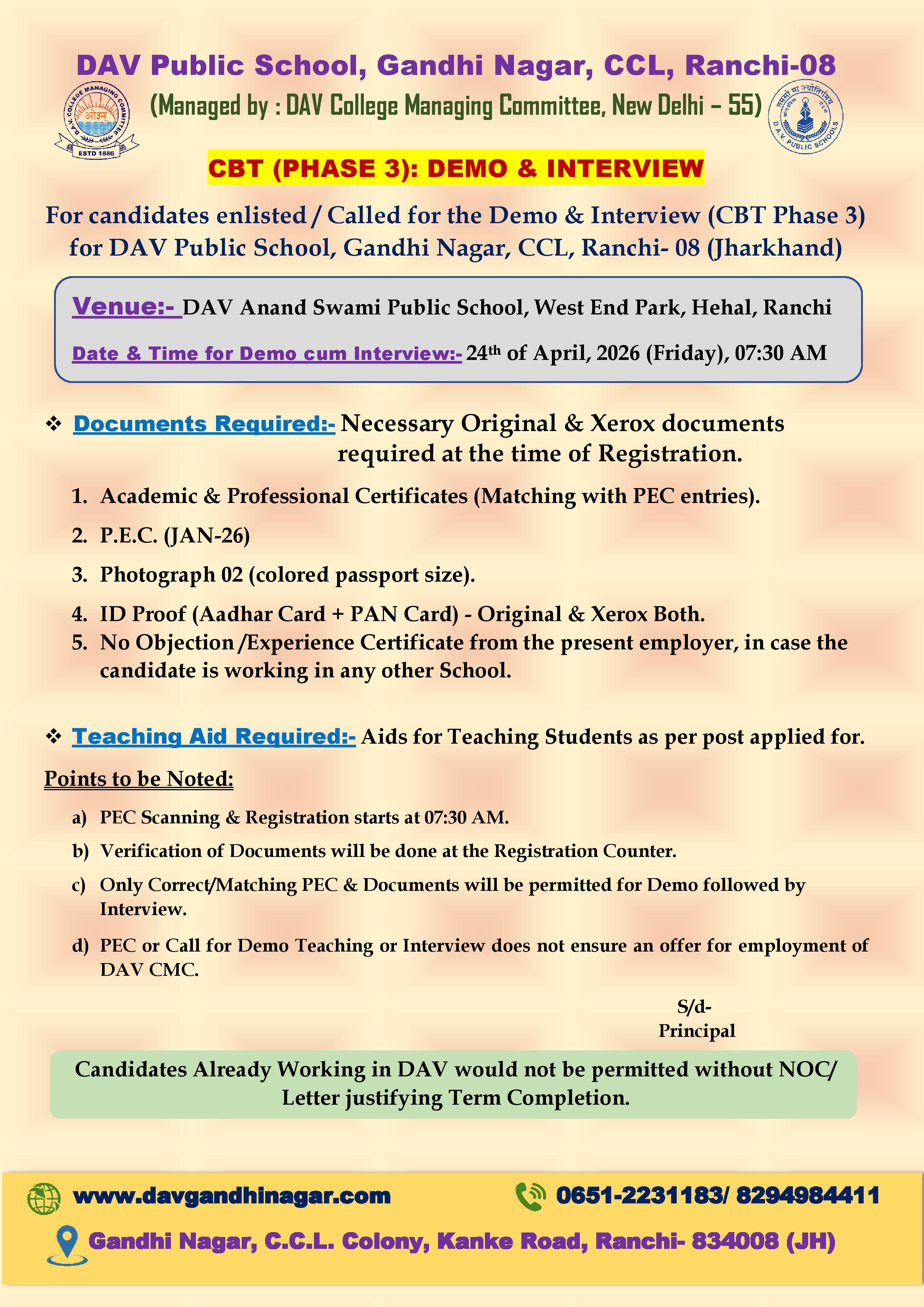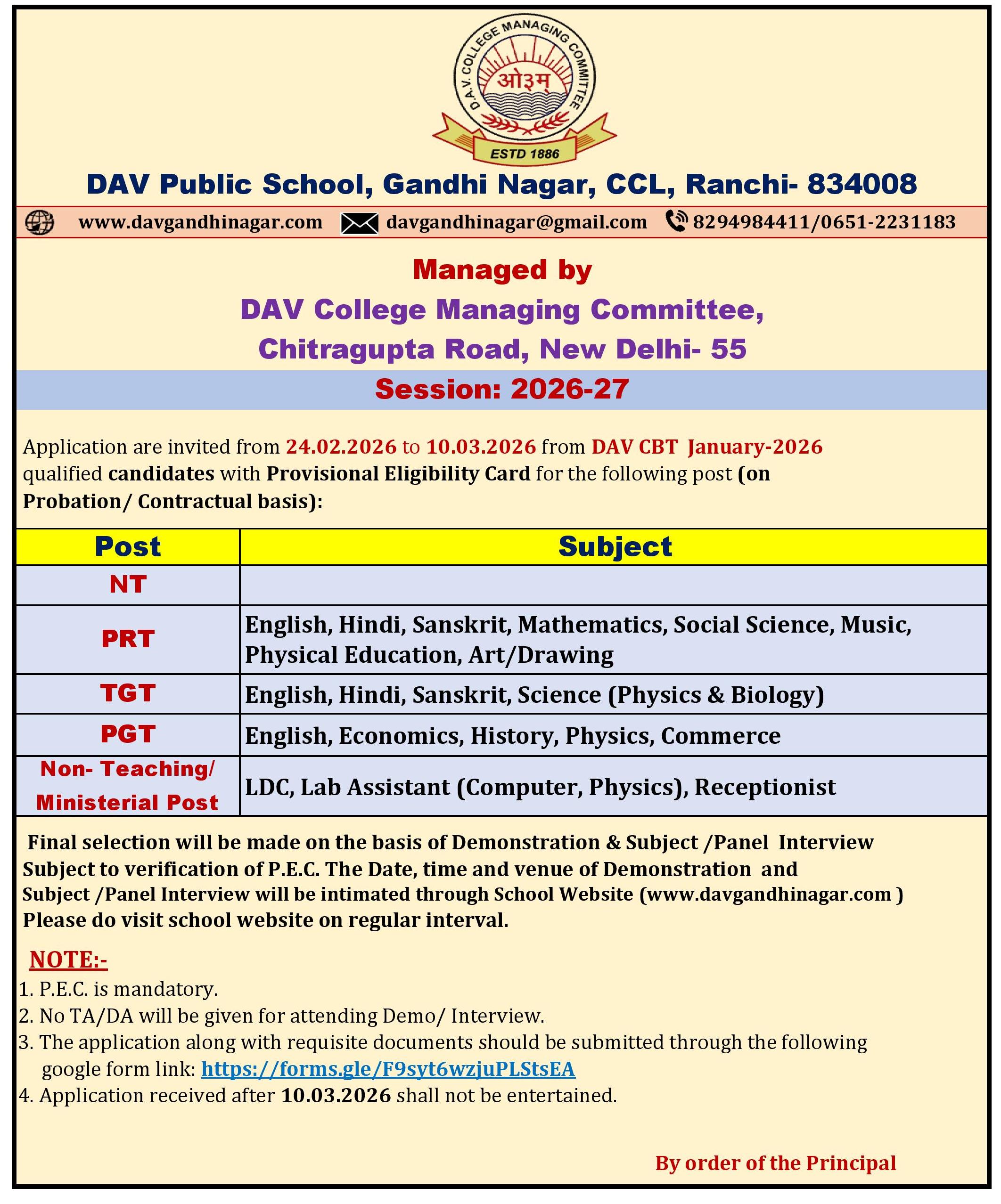 The School, in its present form, is a joint venture of the DAV College Managing Committee and the Coal India Limited (CIL). The erstwhile Shishu Vihar was handed over to the committee in 1990, and getting the matchless managing capability of the committee and the timely cooperation of the CIL, the Vihar has bloomed into.